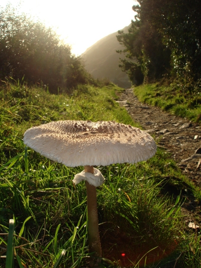 Title: The Path to Polperro By: Jonathan Boakes 2006 Giclée Print on canvas. 120 x 160 cm A dignified, well formed mushroom stands proudly on the path to Polperro. Chapel Cliff, in the distance, is warmed by the setting sun.